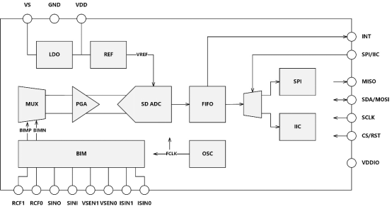 芯海科(kē)技CS1253是一款支持可(kě)穿戴設備的生(shēng)物阻抗測量的模拟前端(AFE)芯片,結合人(rén)體(tǐ)成分(fēn)算法,可(kě)以實現高精度的人(rén)體(tǐ)成分(fēn)分(fēn)析。産品内部集成了生(shēng)物阻抗測量電路(lù)(BIM)和高精度Sigma-delta ADC信号鏈。生(shēng)物阻抗測量電路(lù)采用正弦激勵源,将生(shēng)物阻抗轉化爲電壓信号送到ADC信号鏈進行測量,可(kě)以支持多頻率生(shēng)物阻抗測量。