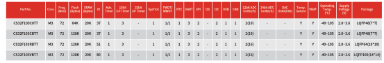 CS32F103采用高性能32位RISC架構,最高工(gōng)作(zuò)頻率爲72MHz,嵌入128K Byte flash和20K Byte SRAM,提供标準的通信接口(I2C、SPI、USART),2路(lù)12Bit ADC、3個通用16位定時器、1個PWM高級定時器、1個USB接口和1個CAN接口。提供包括涵蓋48引腳到100引腳的多種封裝,适用于電機(jī)控制、工(gōng)業自(zì)動化、儀器儀表、醫療、消費電子、汽車電子等應用領域。