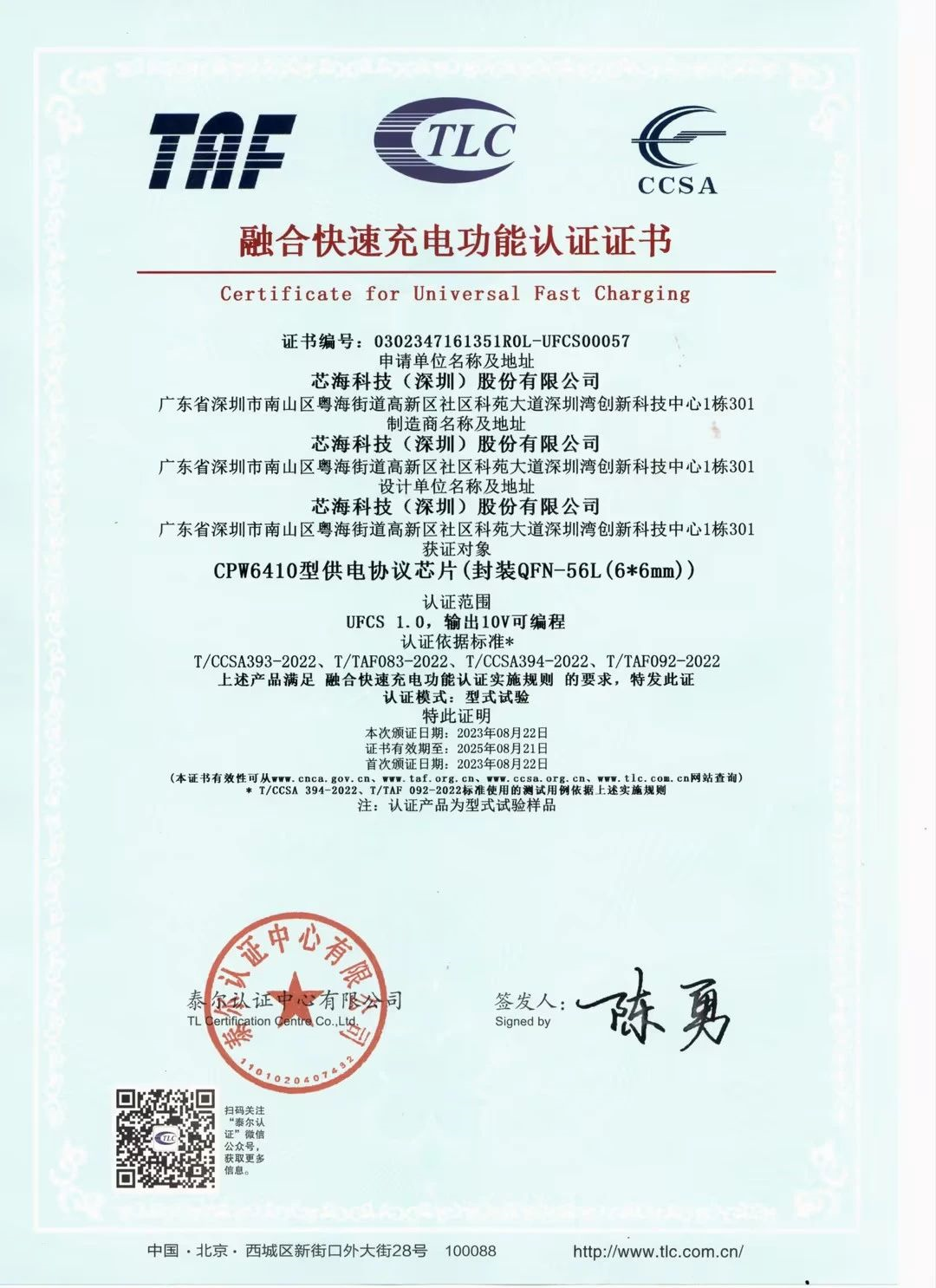 其中,CPW3101爲芯海科(kē)技首顆通過認證的UFCS充電協議(yì)芯片,CPW6410是繼其之後的第二款通過UFCS認證的産品。