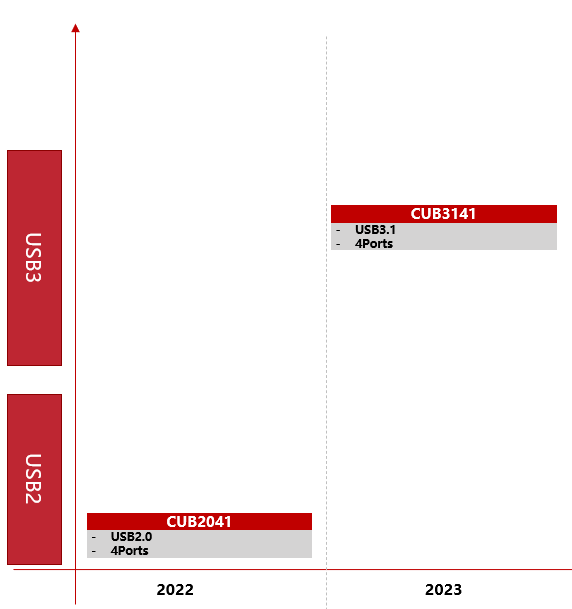 目前,CUB3141也已回片并通過内部芯片測試驗證,現已開始大(dà)客戶導入。至此,芯海已完成USB2.0 Hub産品CUB2041和USB3.1 Hub産品CUB3141的系列化布局,進一步滿足更多的市場需要。