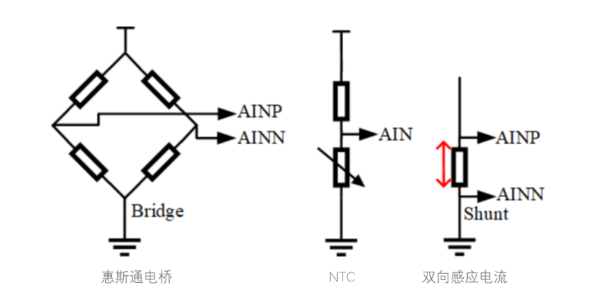 此外,M320内置ADC還(hái)支持惠斯通電橋、NTC、雙向感應電流等多種信号測量電路(lù),以滿足不同的信号測量需求。