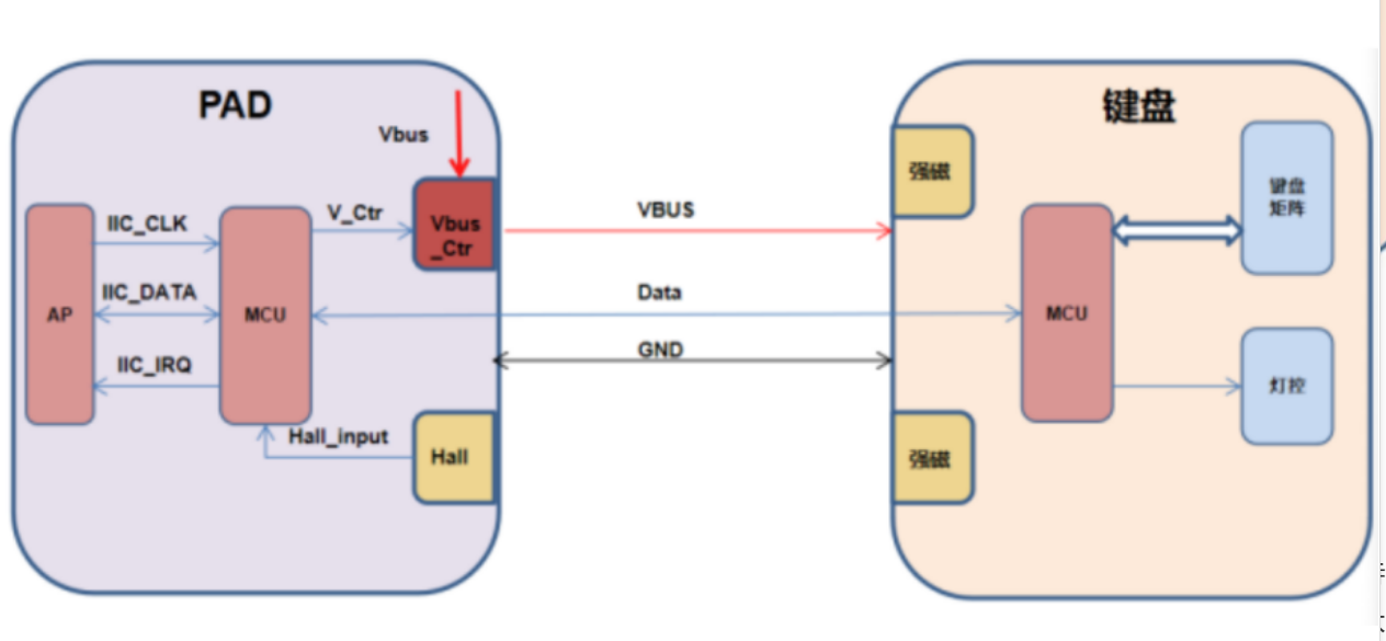 該方案通過創新的連接方式,實現了平闆電腦與鍵盤之間高速、穩定的數據交互功能。具體(tǐ)來(lái)說(shuō),該方案中PAD和鍵盤通過3根PoGoPin連接,無需借助藍牙、wifi等無線外設,也無需繁瑣的外置連接線纜,這種簡潔的鏈接方式極大(dà)簡化了整體(tǐ)方案硬件(jiàn)設計(jì)、降低了成本,還(hái)爲用戶帶來(lái)了即插即用的便捷體(tǐ)驗。