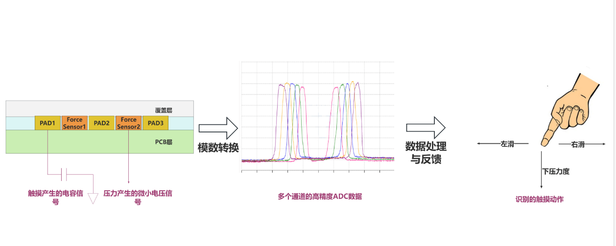 5月7日(rì)晚,蘋果春季新品發布特别活動推出全新升級的Apple Pencil Pro,持續深度布局壓力觸控人(rén)機(jī)交互領域。據外媒透露,即将發布的蘋果iPhone16也将會摒棄實體(tǐ)音量按鍵和電源按鍵,轉而采用創新的“壓力+容式”觸控按鍵技術(shù)。在科(kē)技日(rì)新月異的今天,傳統物理(lǐ)按鍵正在逐漸被電阻、電容等觸控技術(shù)所替代。該項技術(shù)打破了傳統物理(lǐ)按鍵的外觀設計(jì),爲用戶帶來(lái)了更加美觀、便捷和極具科(kē)技感的人(rén)機(jī)交互體(tǐ)驗。采用電容觸摸檢測技術(shù)的産品無需在産品表面開孔,能夠爲産品提供便捷且長久的使用壽命,同時賦予了産品科(kē)技與藝術(shù)的雙重魅力。然而,它在某些應用場景下,可(kě)能存在容易誤觸的問(wèn)題。而全壓力觸控技術(shù)則能夠精準捕捉用戶的按壓力度,并具備更強的抗幹擾能力,但(dàn)是在滑動操作(zuò)時,由于手指與面闆之間的摩擦力,用戶體(tǐ)驗可(kě)能受到影(yǐng)響。因此,将電容與壓力的檢測技術(shù)融合應用于滑動操作(zuò),是技術(shù)上的完美結合。