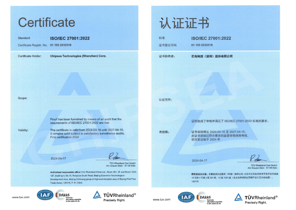 近日(rì),芯海科(kē)技(股票代碼:688595)榮獲國(guó)際知名認證機(jī)構德國(guó)萊茵TÜV集團頒授的ISO/IEC 27001信息安全管理(lǐ)體(tǐ)系認證。這一認證标志着芯海科(kē)技在信息安全管理(lǐ)方面達到了國(guó)際标準的要求,表明在有效保護客戶和合作(zuò)夥伴信息資産方面安全可(kě)靠。