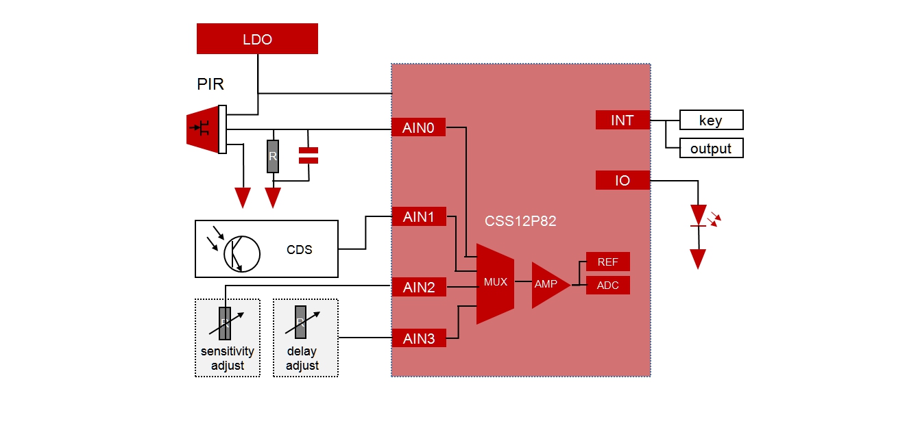 CSS12P82 is a single-chip PIR solution from CHIPSEA—it includes a 24-bit high-precision Sigma-Delta ADC and supports up to four analog inputs. At the same time, it has a built-in 8-bit RISC MCU and supports 8-bit PWM outputs and external interrupt detection, making it a preferred and cost-effective PIR solution.