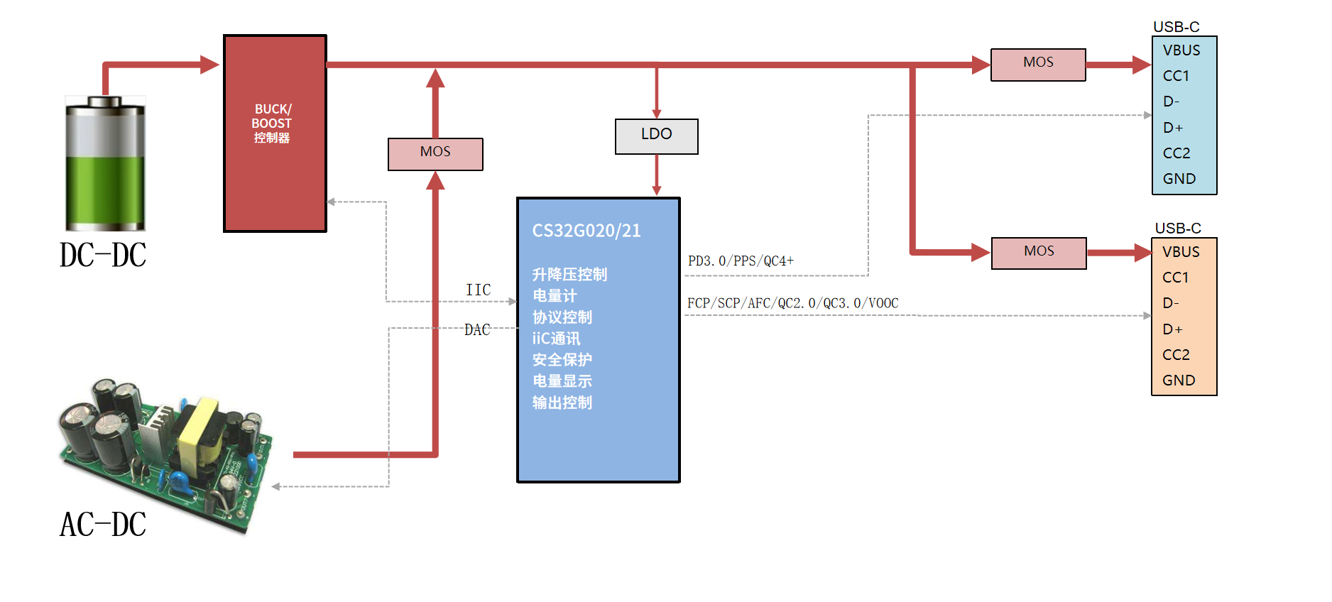 智能調配輸出功率,多口共享最大(dà)功率輸出