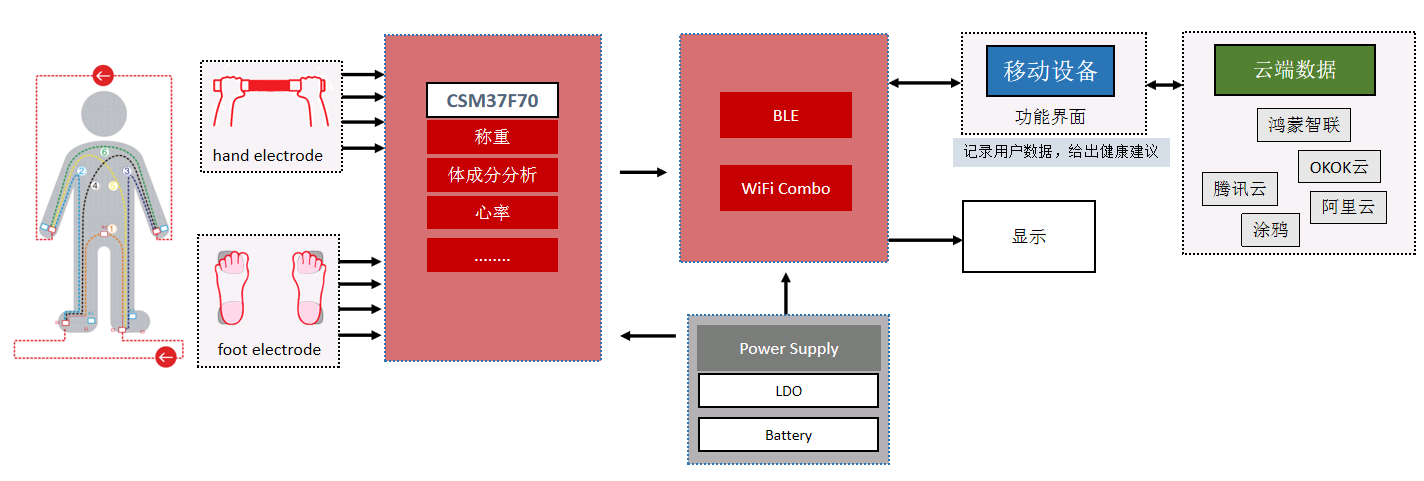 芯海消費類人(rén)體(tǐ)成分(fēn)分(fēn)析儀方案,是基于小型化、高集成度人(rén)體(tǐ)成分(fēn)分(fēn)析模組和人(rén)體(tǐ)成分(fēn)分(fēn)析算法以及雲服務實現的更适用于家庭應用場景的消費級人(rén)體(tǐ)成分(fēn)分(fēn)析方案。降低了客戶産品研發的門(mén)檻,進一步打造集測量、分(fēn)析、指導建議(yì)于一體(tǐ)的智慧健康閉環服務鏈條。